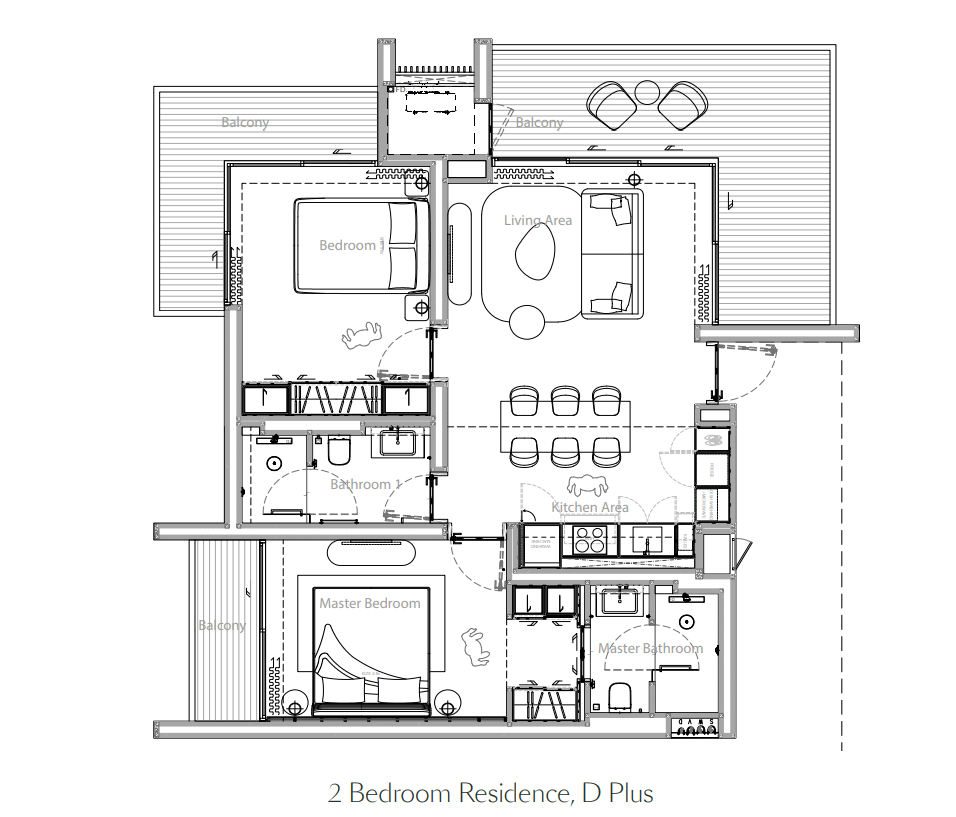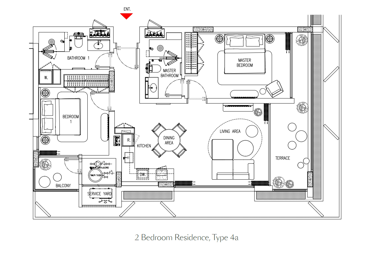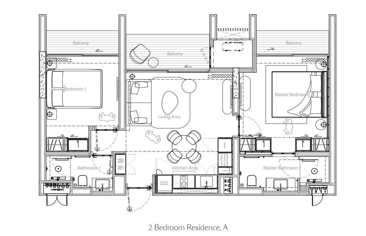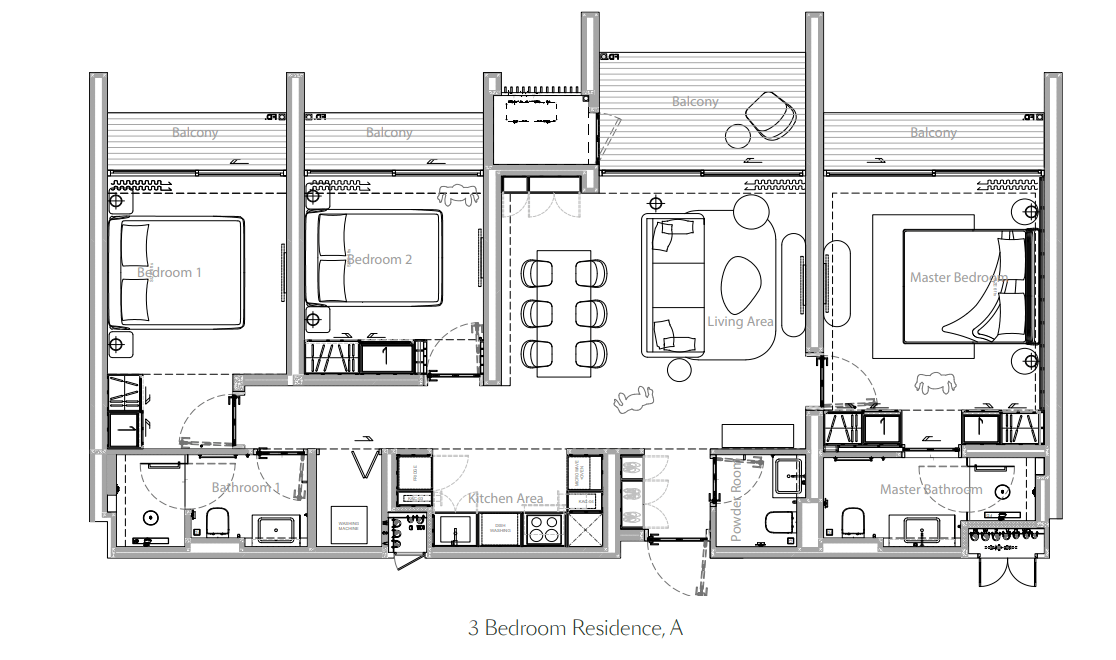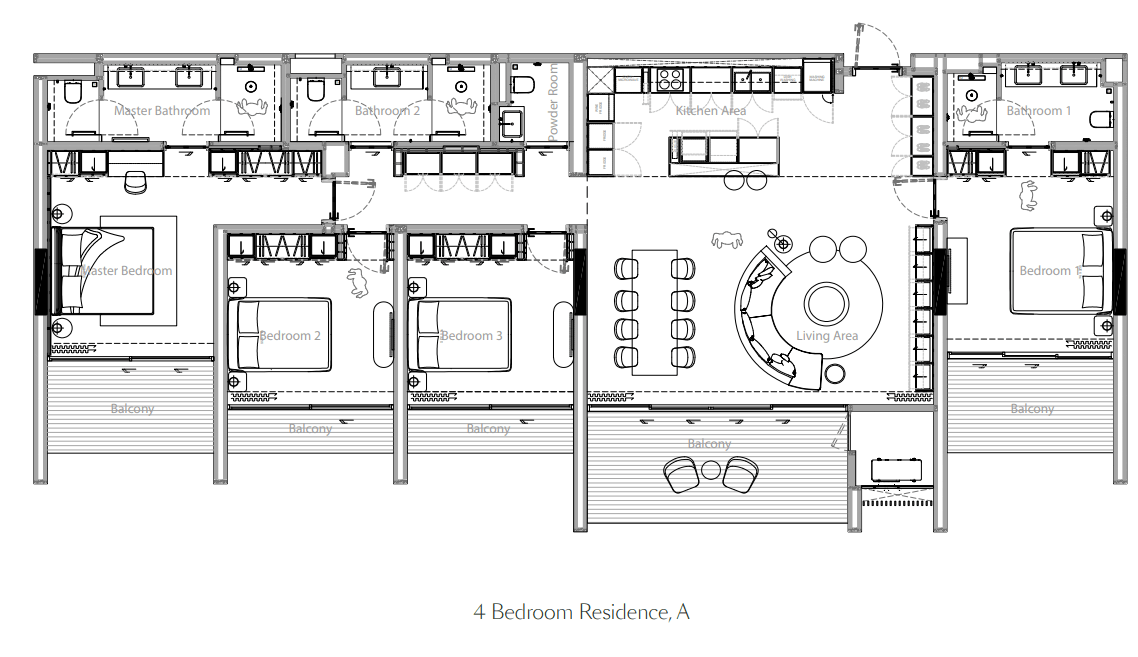 • Резиденции с 1, 2, 3 и 4 спальнями на любой вкус: от уютных односпальных апартаментов до просторных пентхаусов с несколькими спальнями.