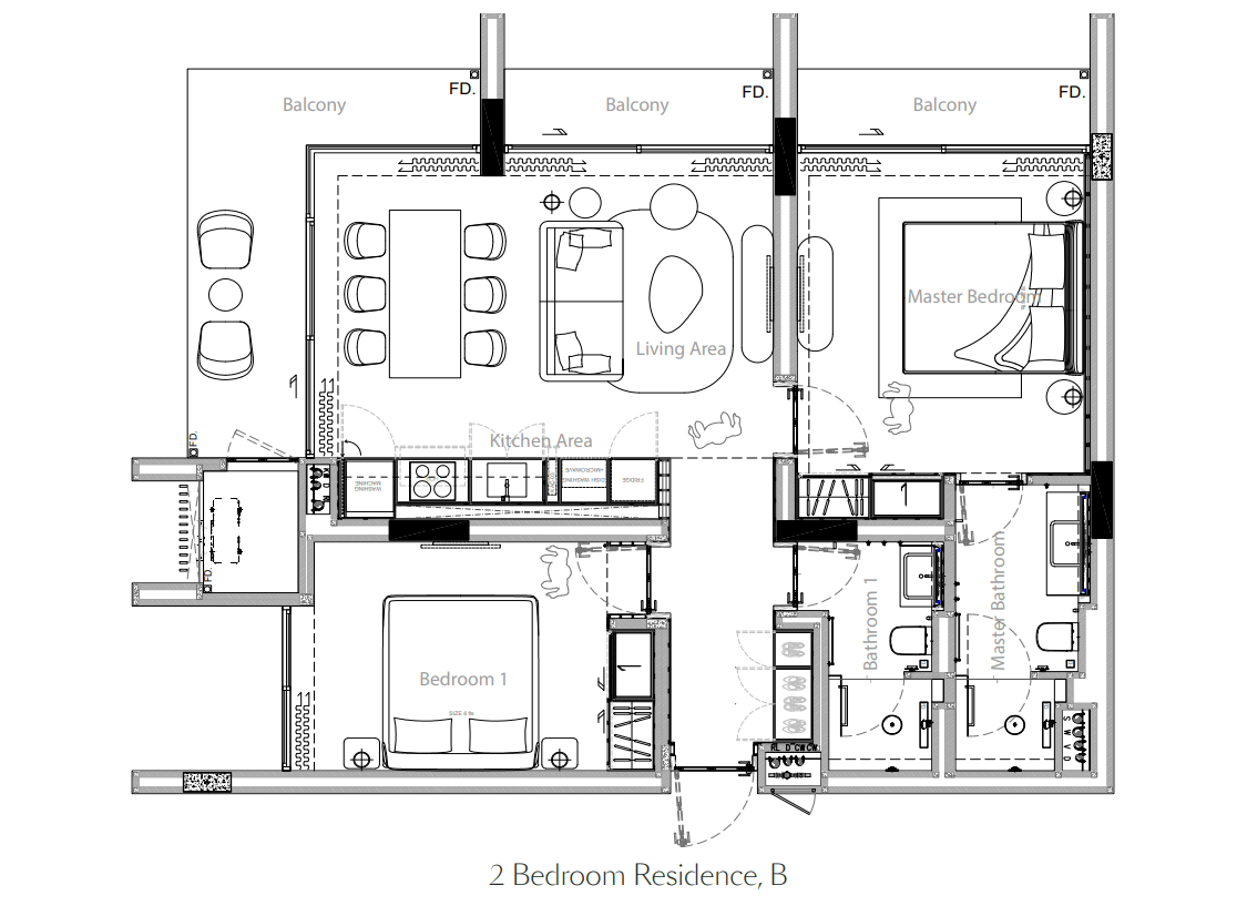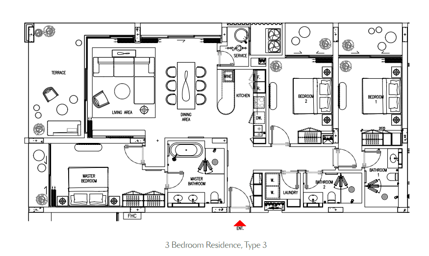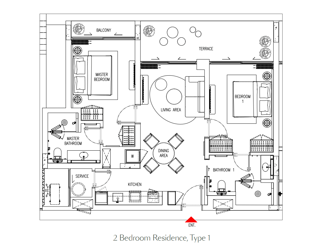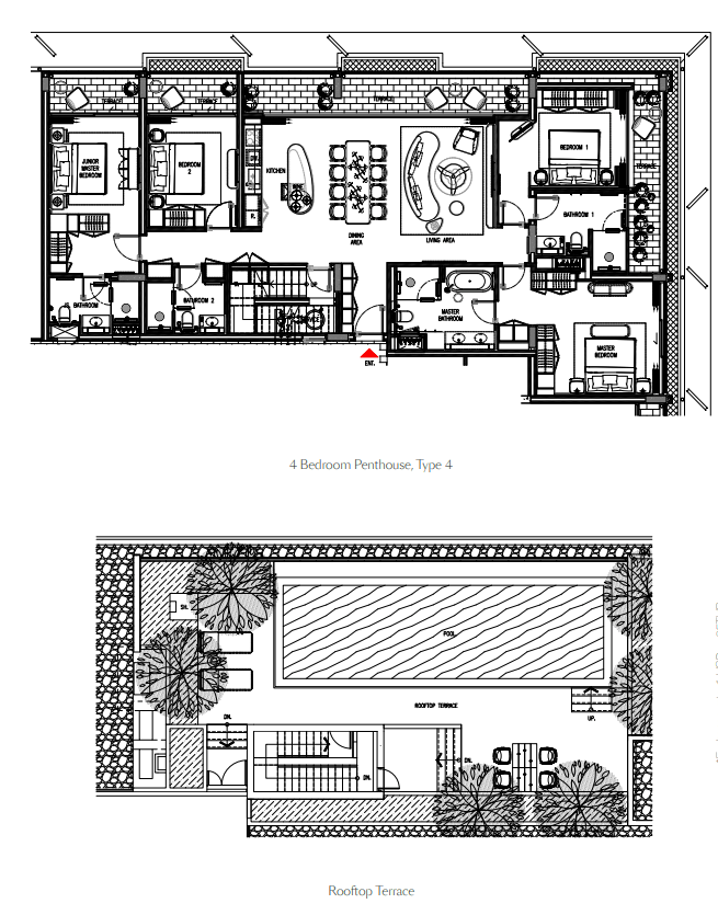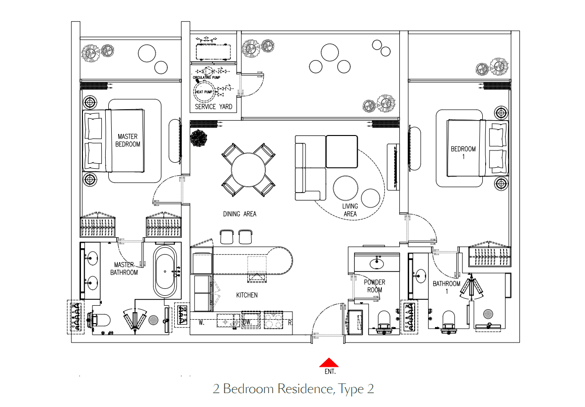 • Резиденции с 1, 2, 3 и 4 спальнями на любой вкус: от уютных односпальных апартаментов до просторных пентхаусов с несколькими спальнями.