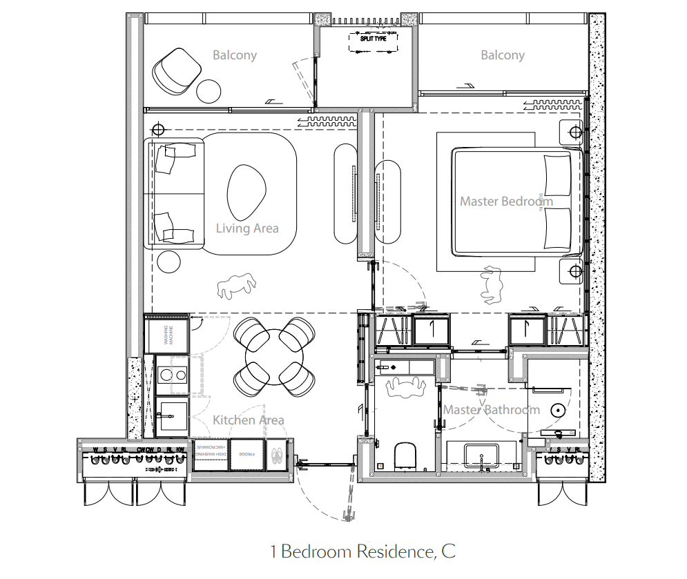 • Резиденции с 1, 2, 3 и 4 спальнями на любой вкус: от уютных односпальных апартаментов до просторных пентхаусов с несколькими спальнями.