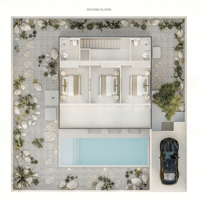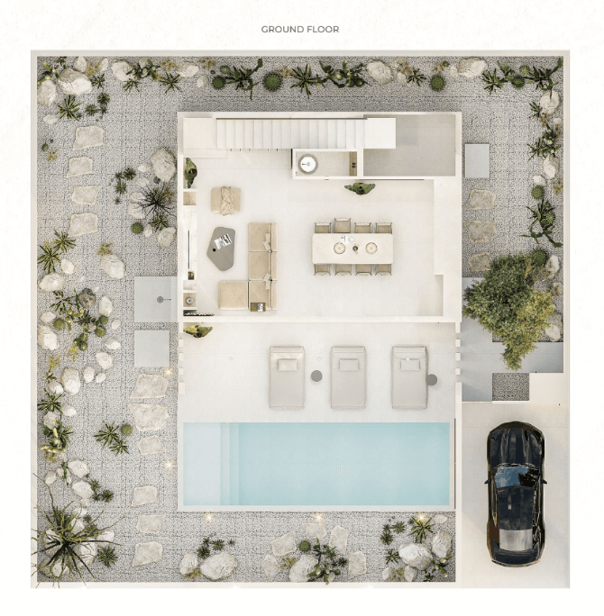 Проект предлагает одно- и двухэтажные виллы с 2, 3 или 4 спальнями, каждая из которых выполнена в современном стиле с приватным бассейном, террасой и ландшафтным озеленением. Участки — от 185 до 220 м², жилая площадь — от 150 до 300 м².
