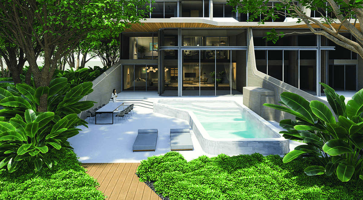 HYTHE символизирует “тихую гавань” — место для жизни и восстановления. Все здания комплекса расположены вокруг центрального сада и бассейна, обеспечивая гармонию с природой, приватность и комфорт.