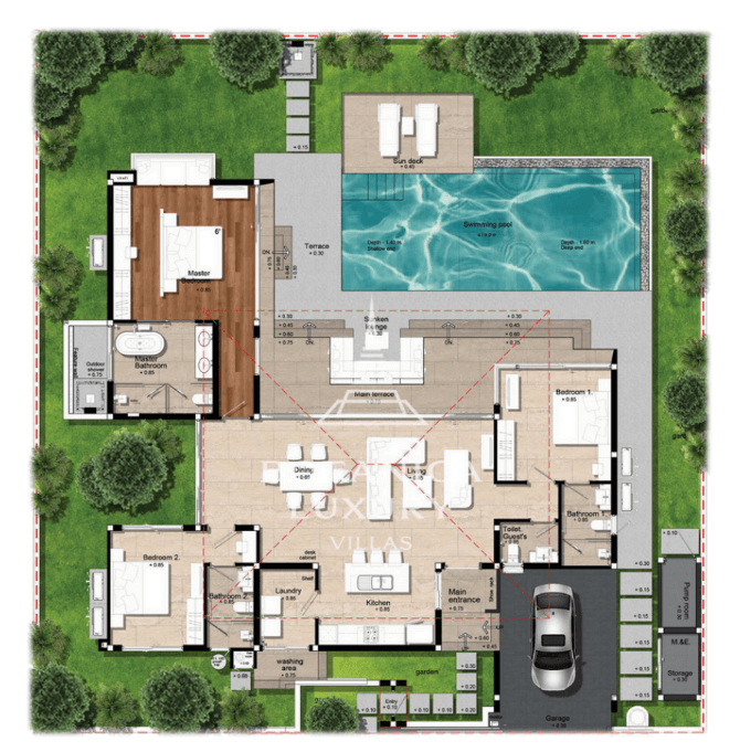 • Частные бассейны, зелёные дворы, террасы и парковки