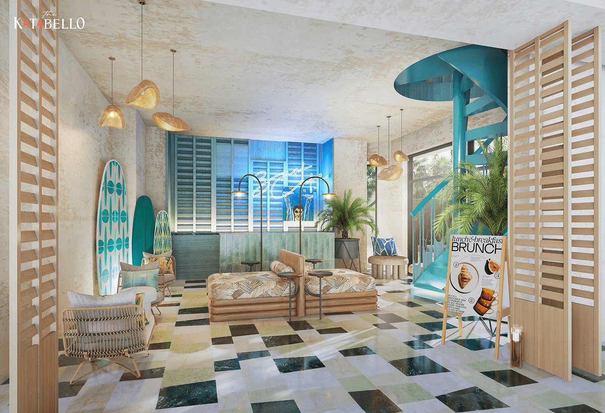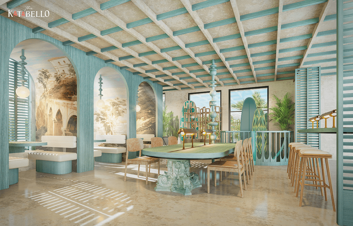 Вдохновлённый стилем средиземноморских резиденций, Katabello оформлен в мягкой, тёплой цветовой палитре. Пространство наполнено зеленью, извилистыми дорожками и зонами отдыха с водными элементами, создающими ощущение уединения и расслабления.