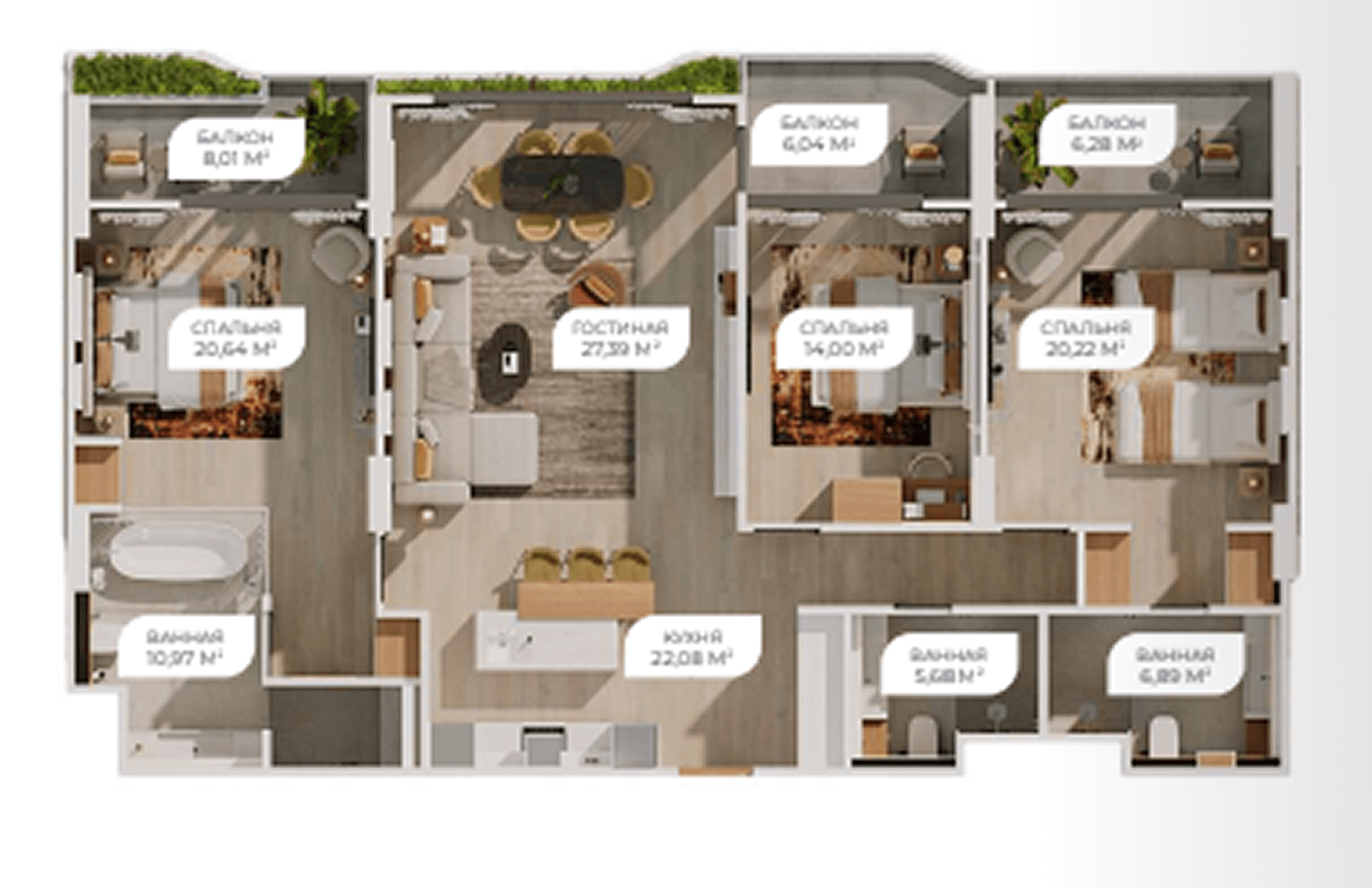 - Экологичный дизайн: использование устойчивых материалов и соответствие стандартам сертификации EDGE, что обеспечивает снижение потребления воды и энергии на 40% по сравнению с обычными зданиями.
