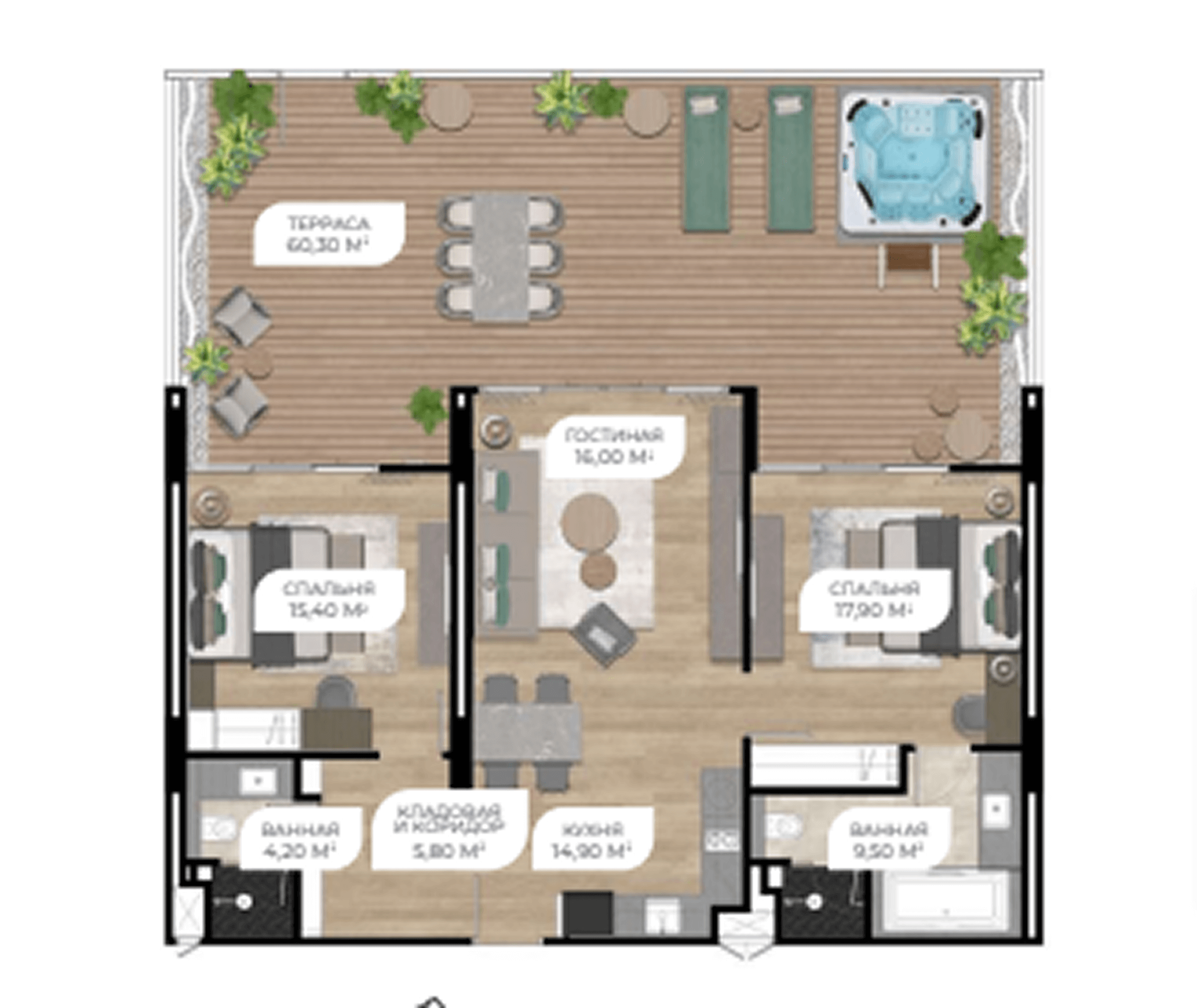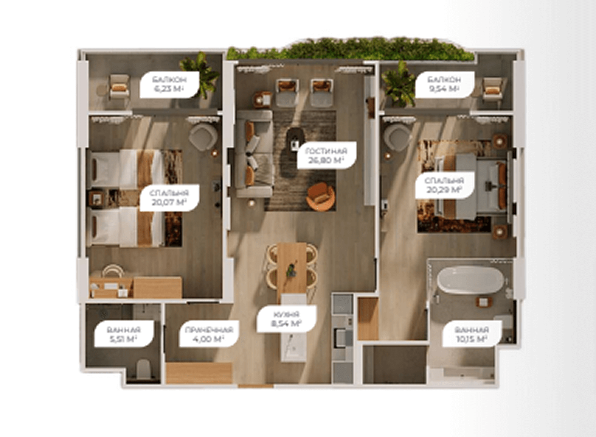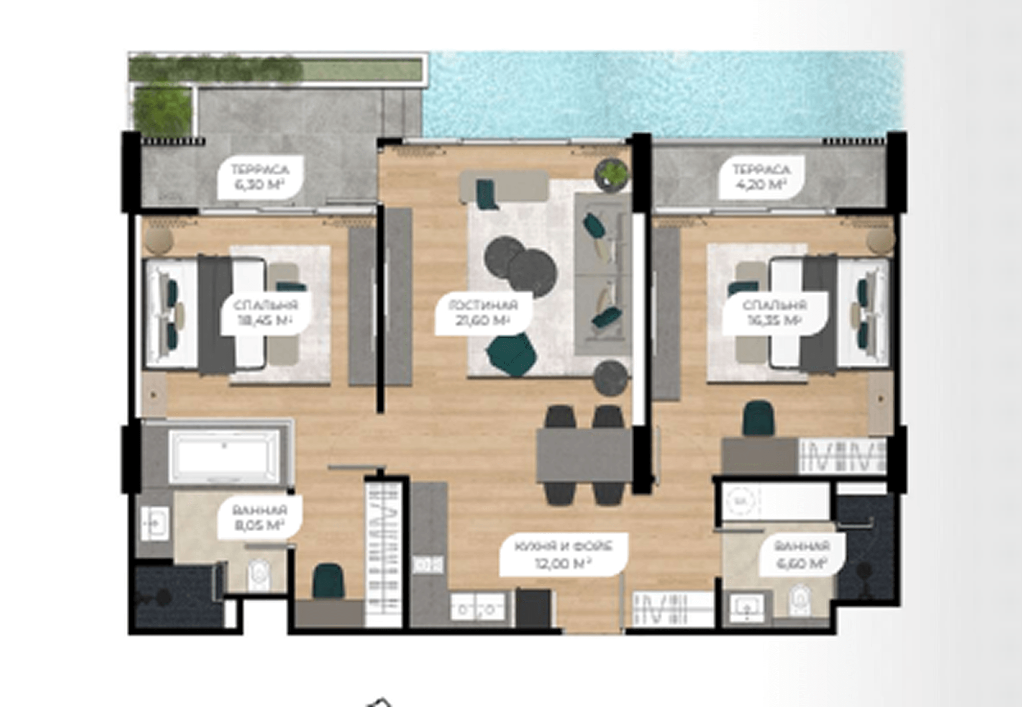- Экологичный дизайн: использование устойчивых материалов и соответствие стандартам сертификации EDGE, что обеспечивает снижение потребления воды и энергии на 40% по сравнению с обычными зданиями.
