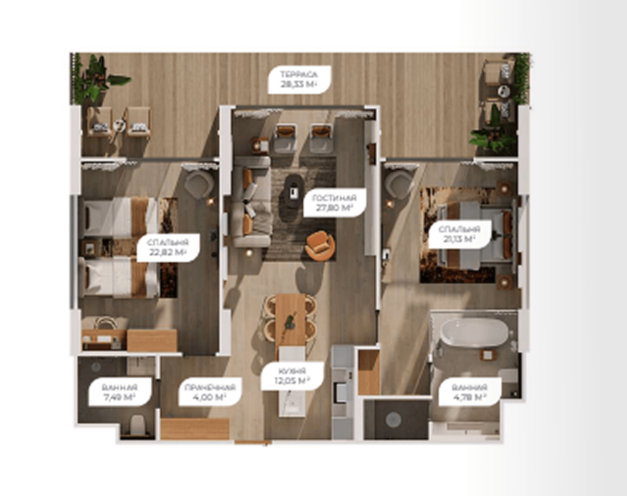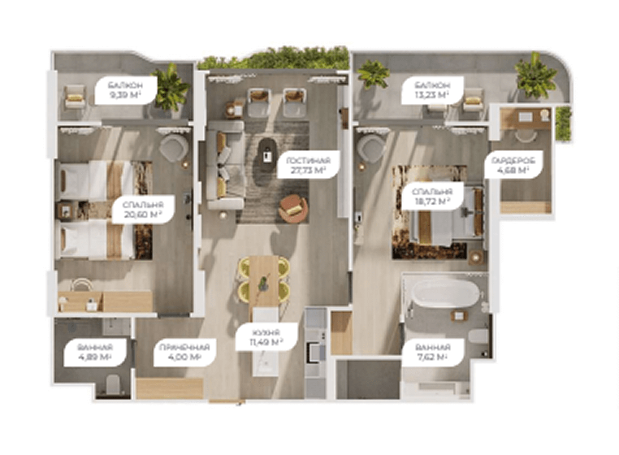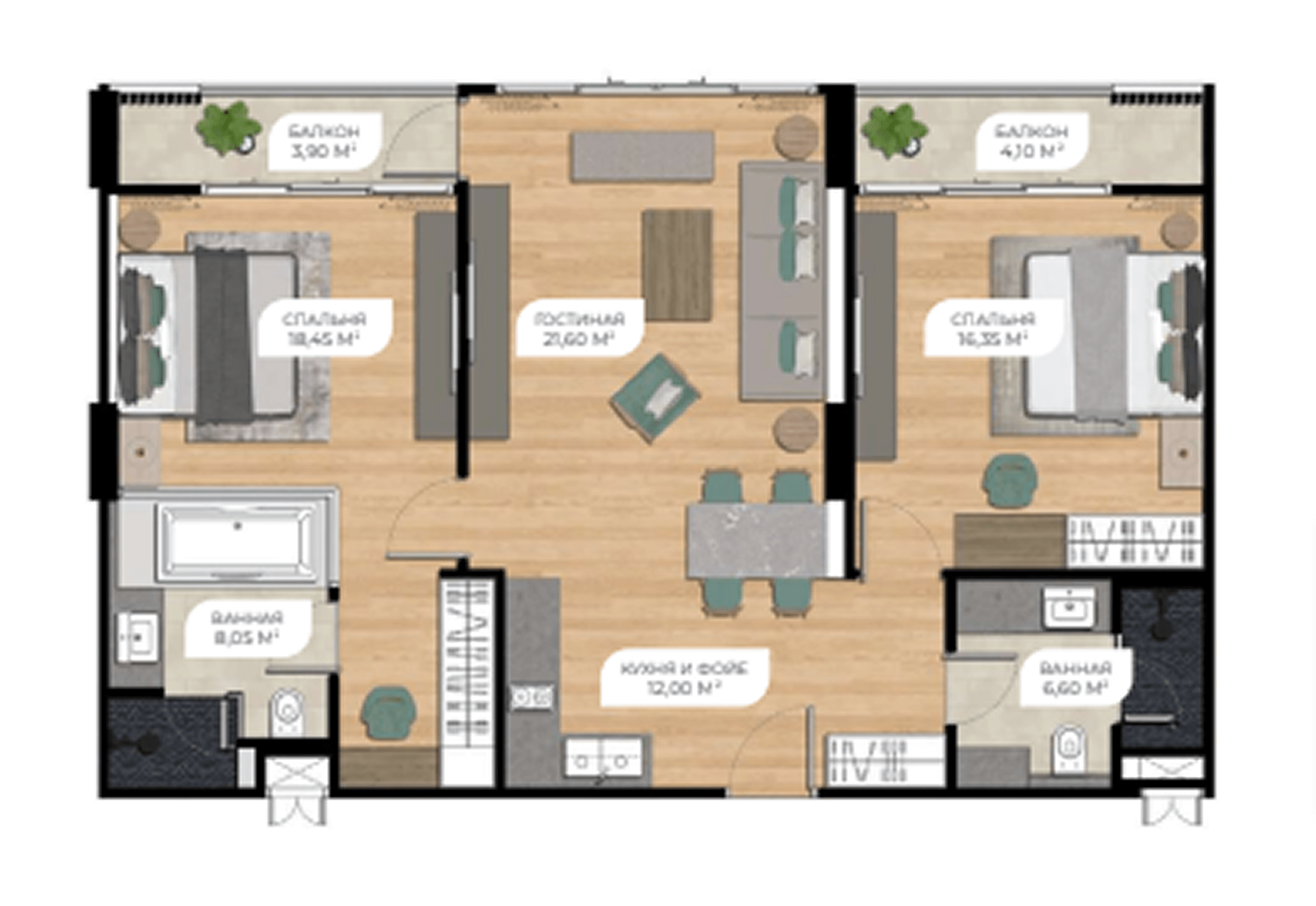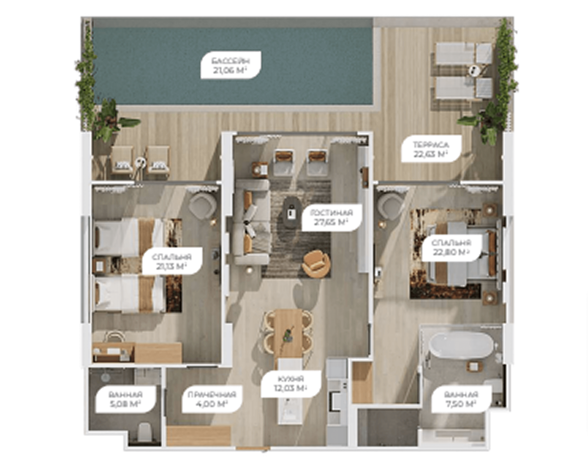 - Экологичный дизайн: использование устойчивых материалов и соответствие стандартам сертификации EDGE, что обеспечивает снижение потребления воды и энергии на 40% по сравнению с обычными зданиями.