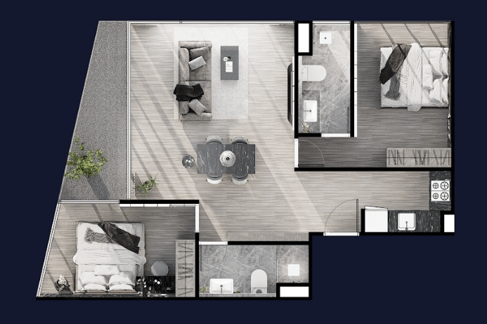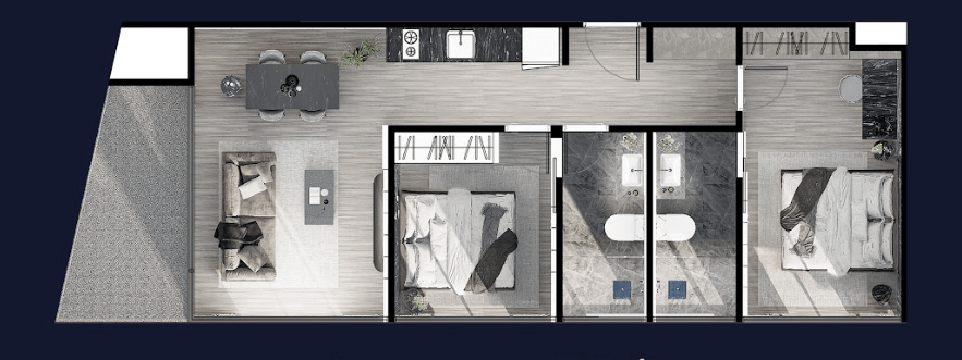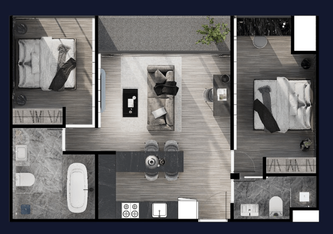Комплекс выполнен в минималистичном современном стиле с упором на комфорт, приватность и продуманное зонирование.